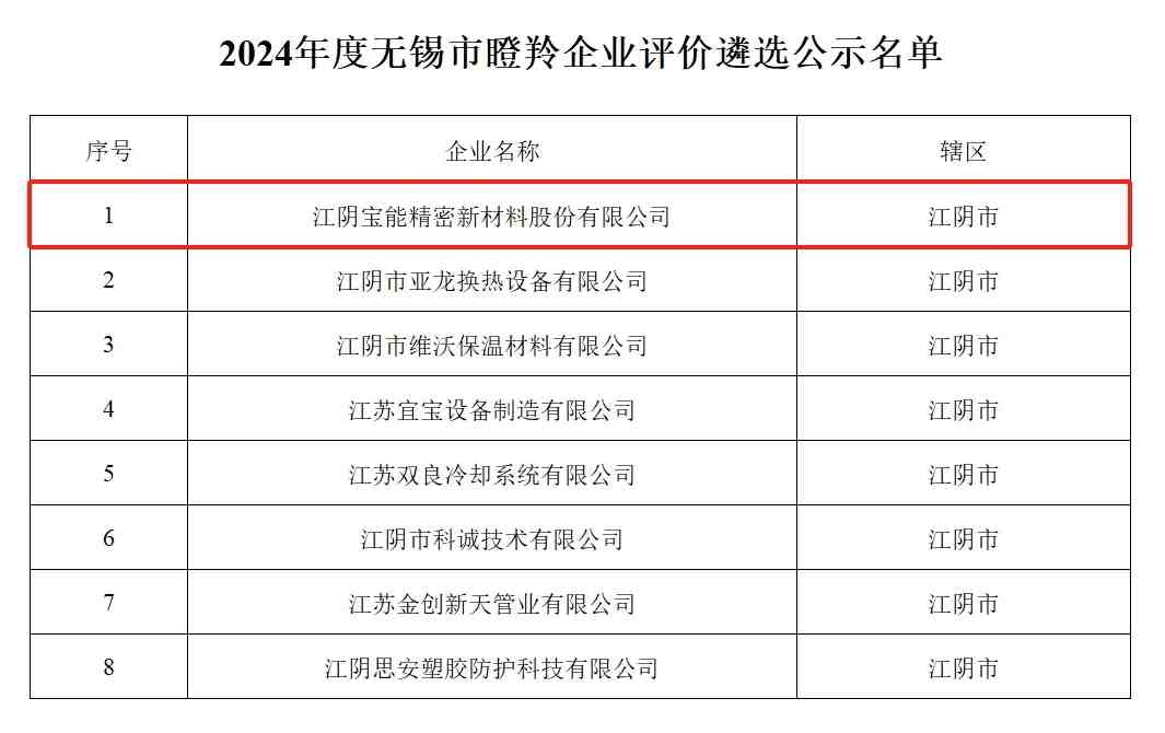 公司擁有多項企業(yè)榮譽資質:“江蘇省民營科技企業(yè)”、“江陰市切割硅片用超高強微絲工程技術研究中心”、“江蘇省科技型中小企業(yè)”、“無錫市創(chuàng)新型中小企業(yè)”。在全體寶能人的努力探索、奮勇爭先下,在各項榮譽資質的加持下,公司已發(fā)展成為金剛石線繩切割行業(yè)骨架材料全方案核心供應商。